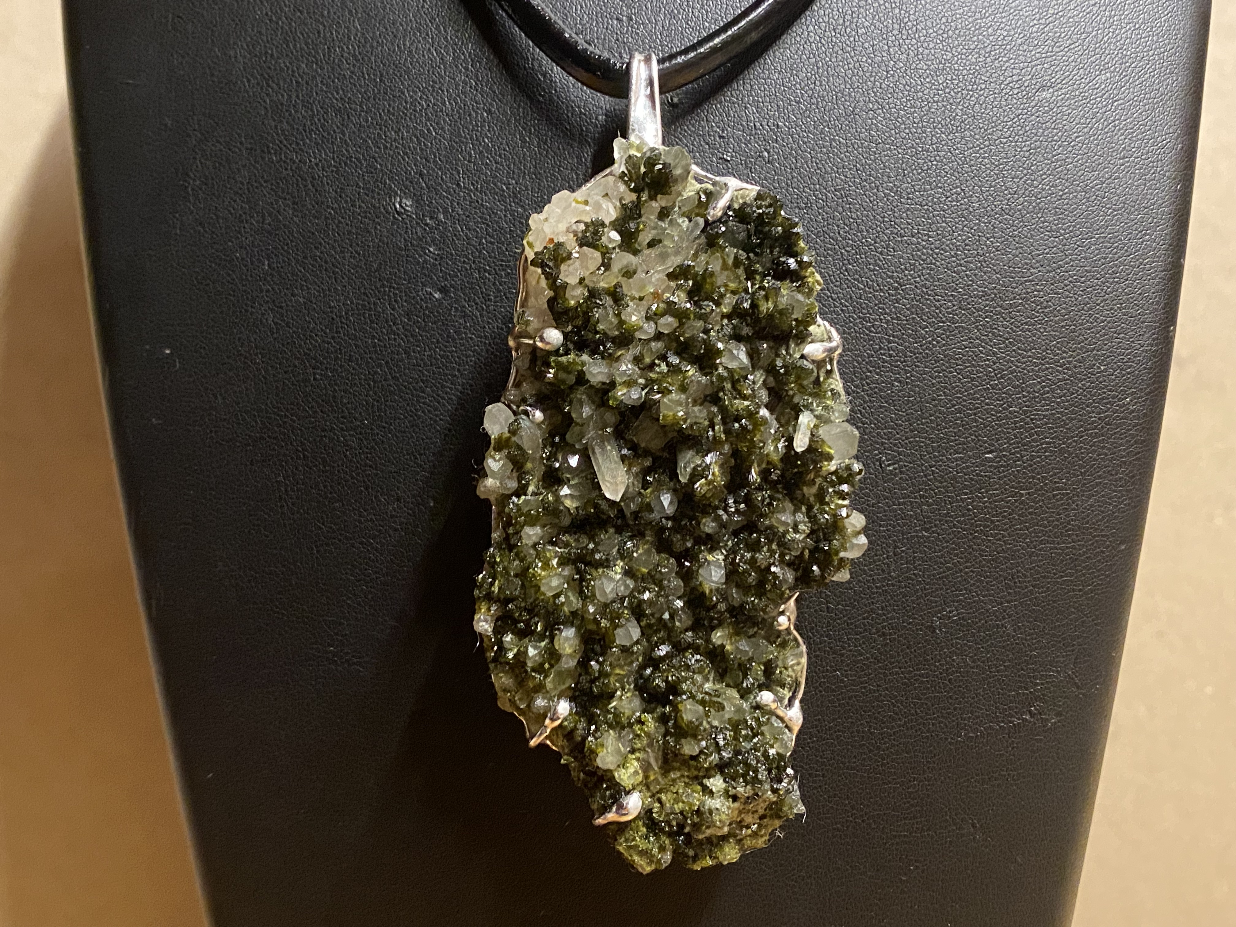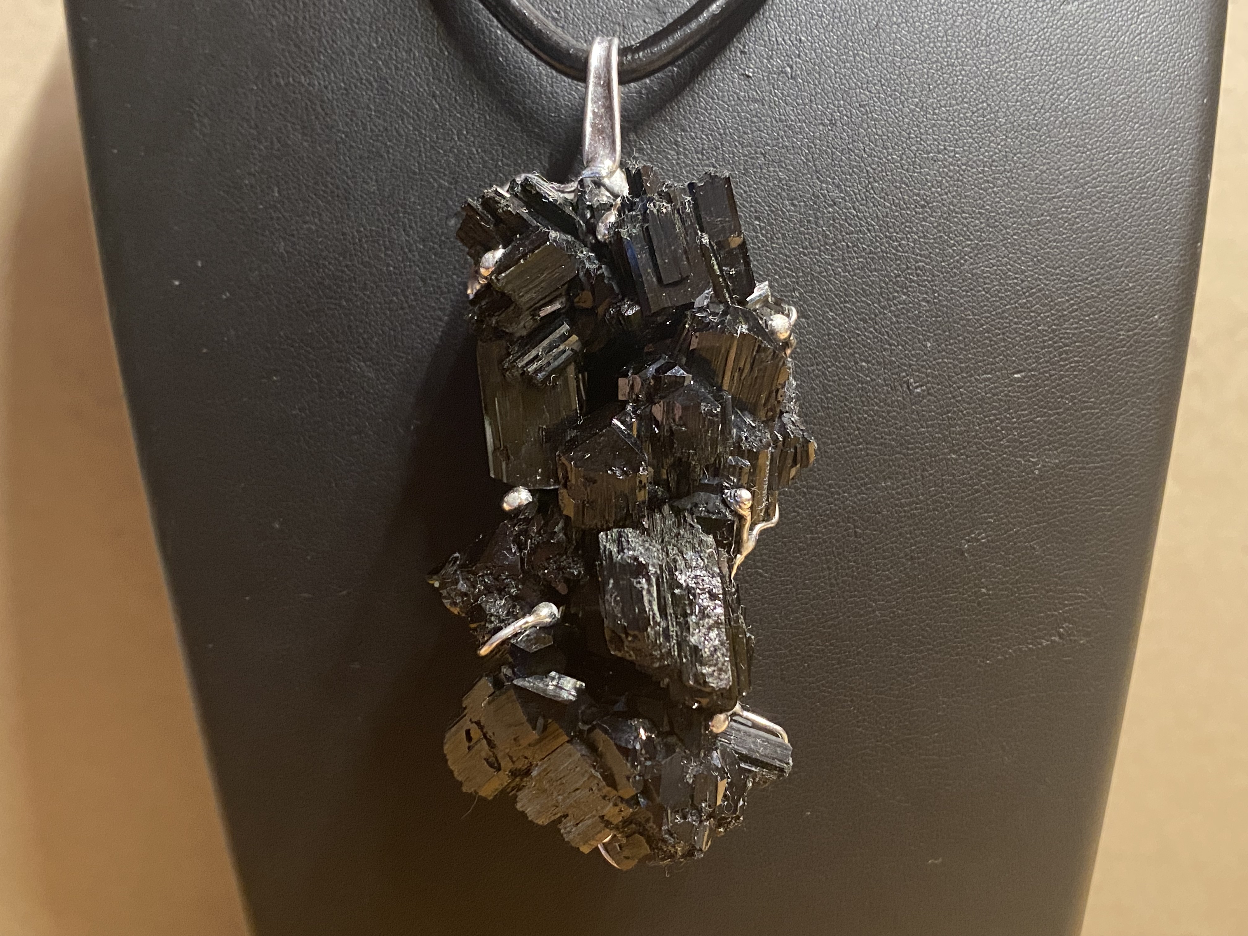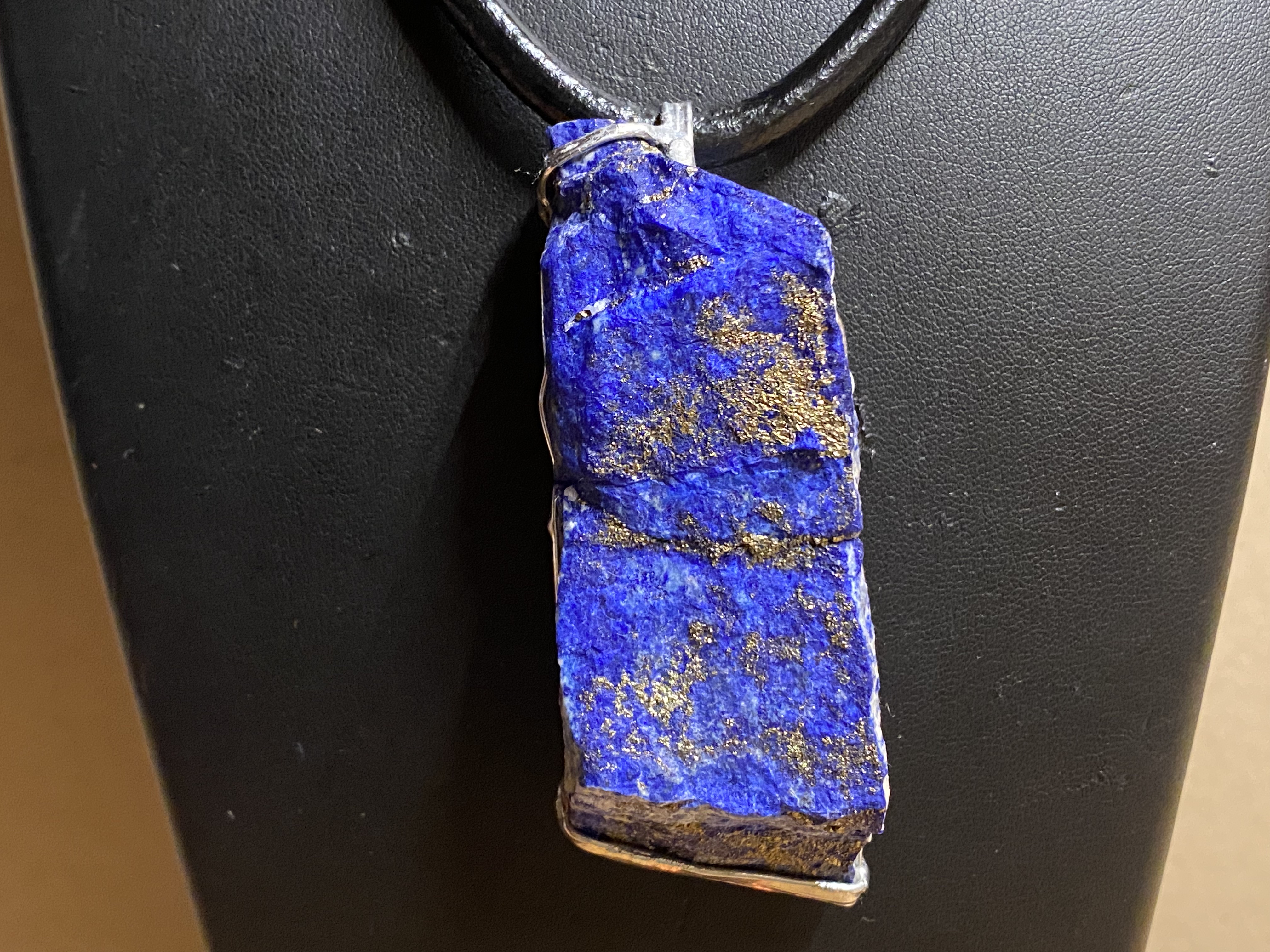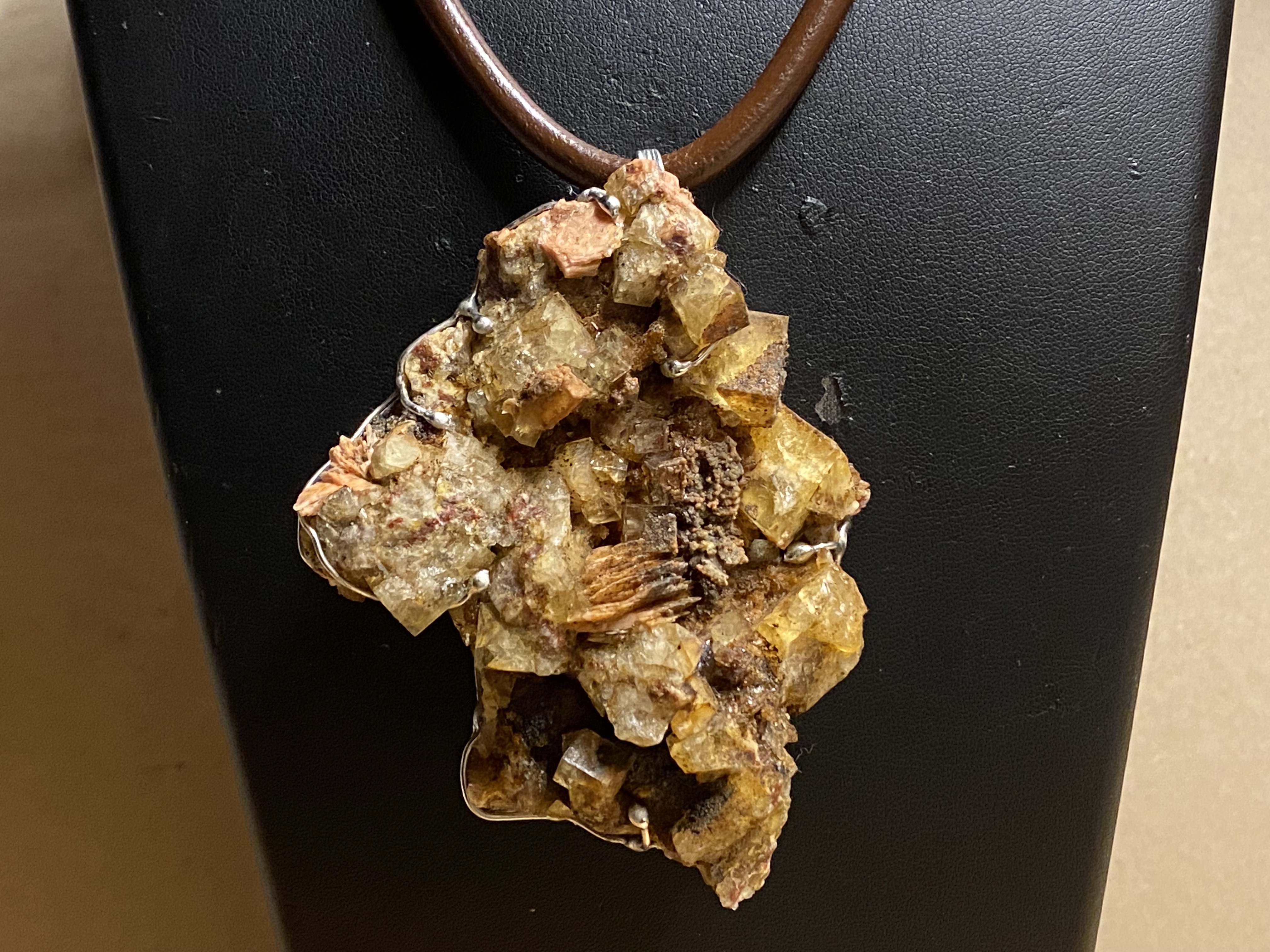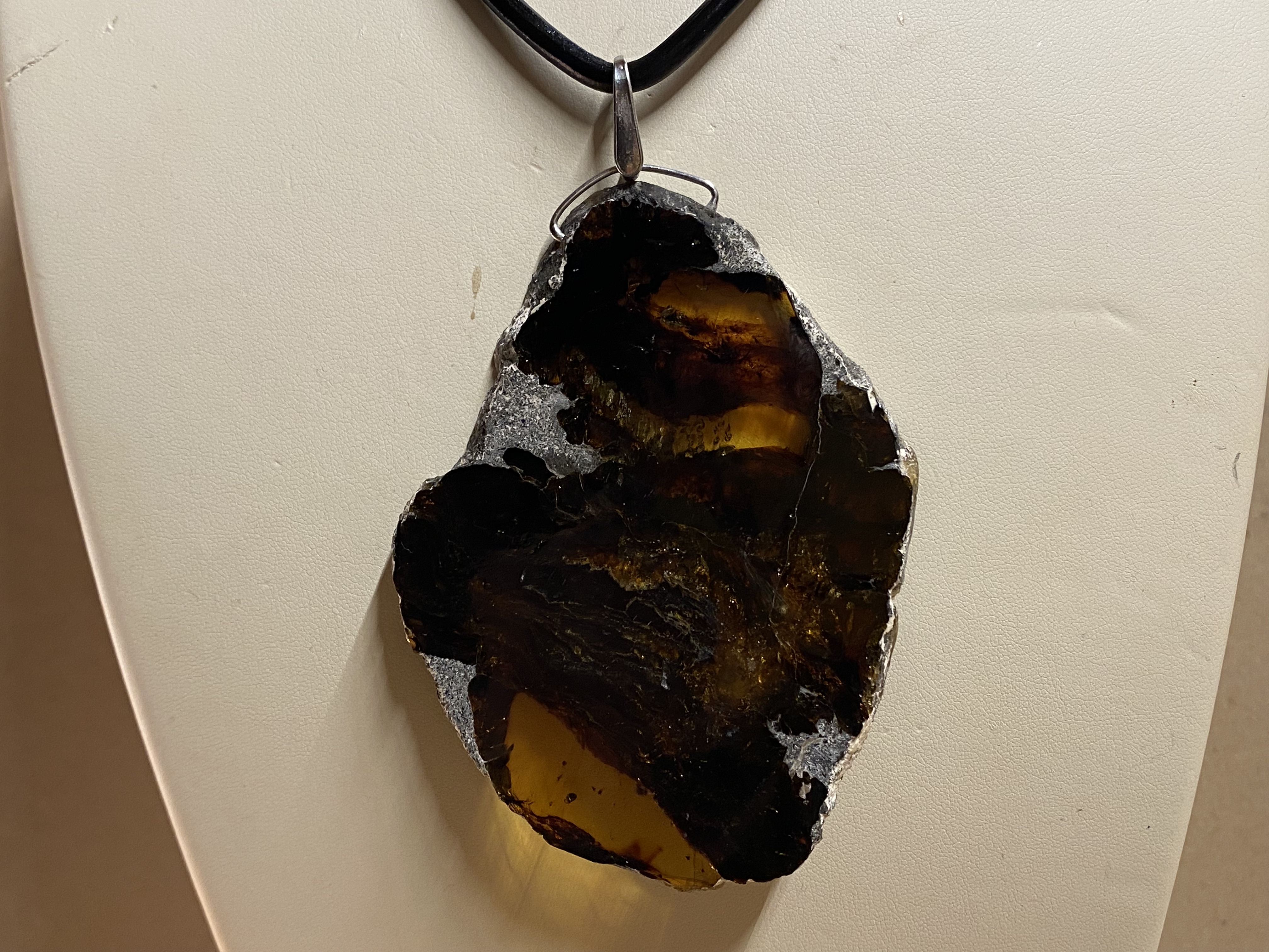 Velikost přívěsku je10 x 5,5 x 4cm, zavěšen na přírodní lakované kůži. Kč 3.200,-.