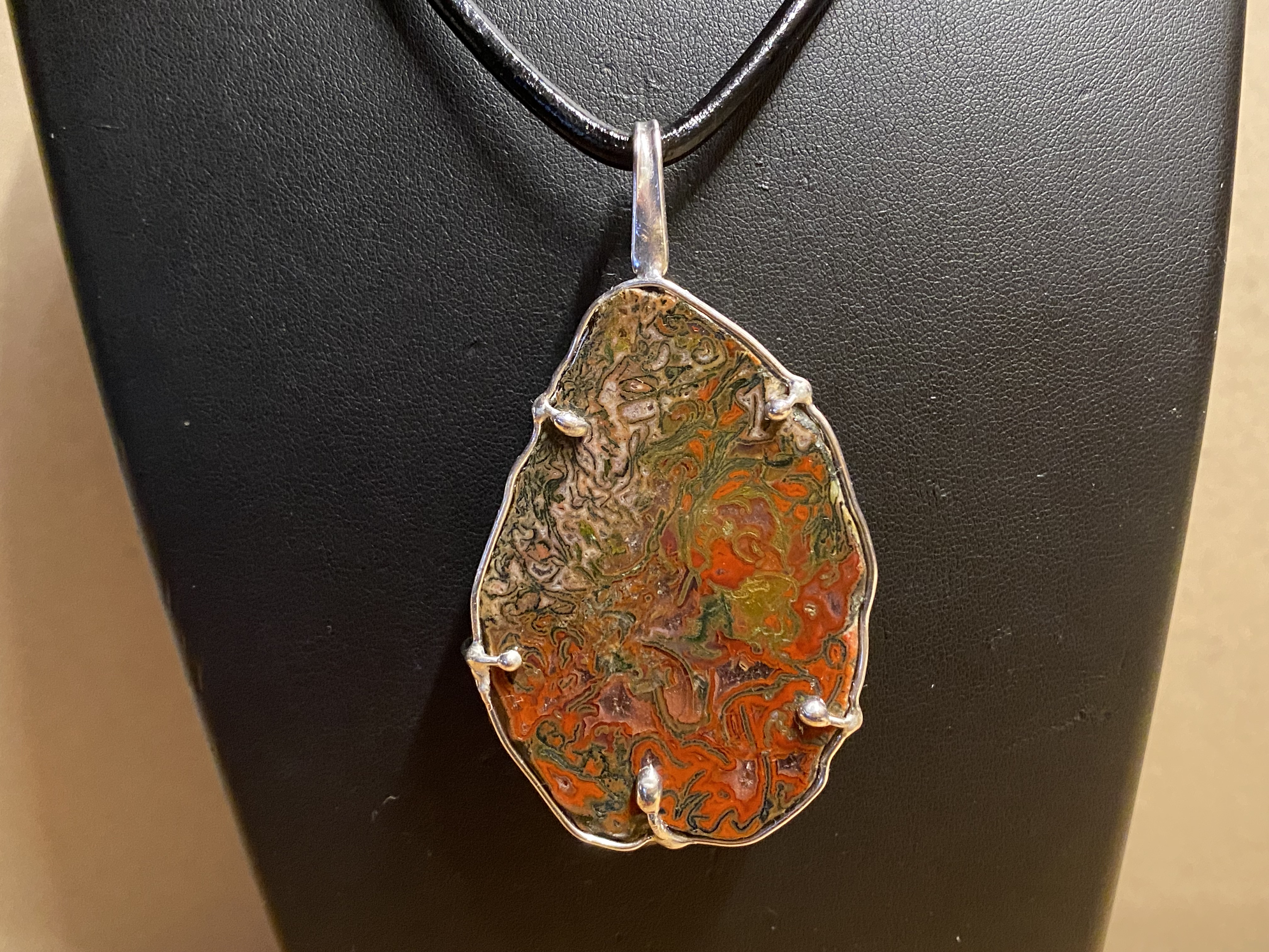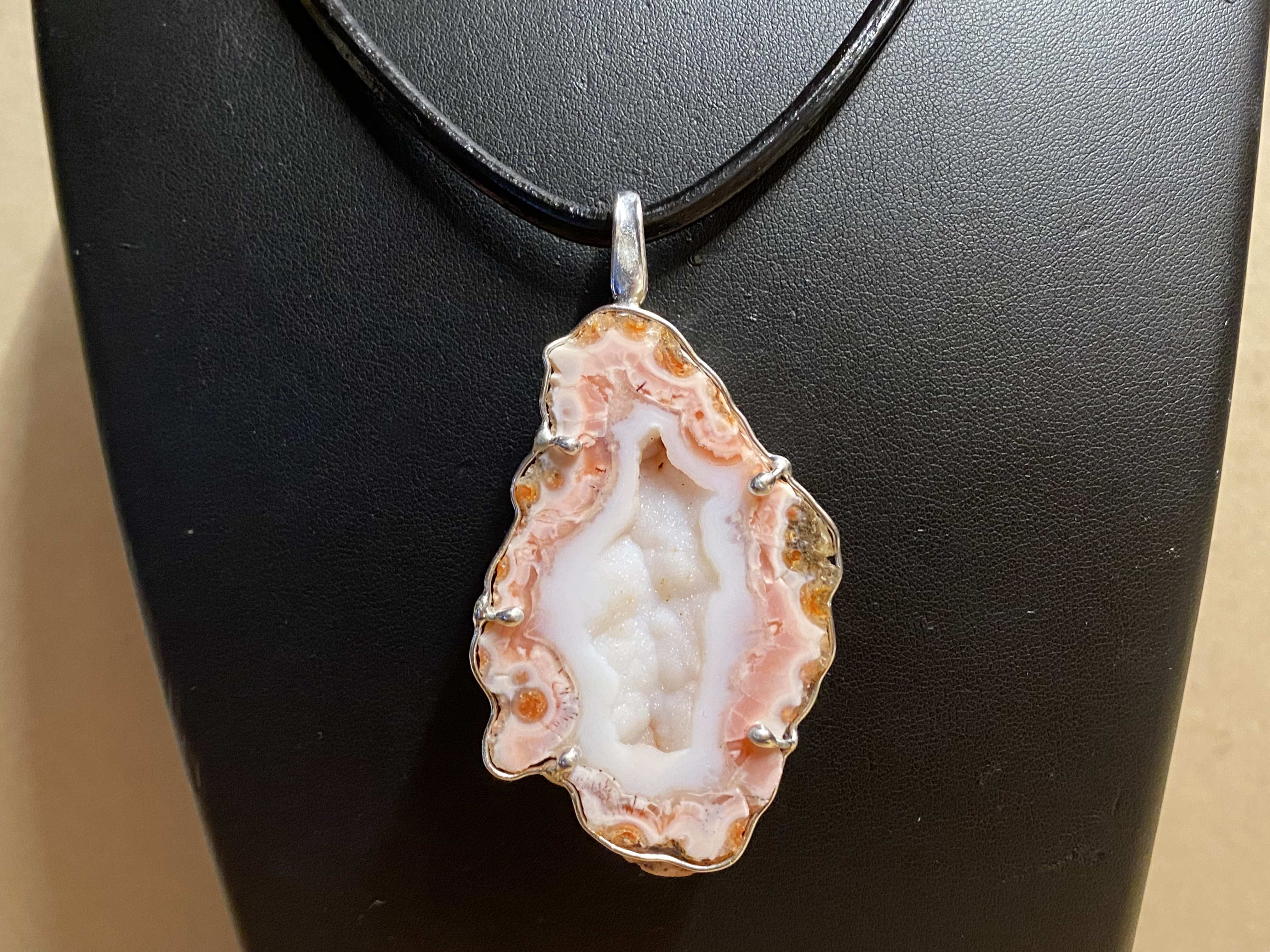 Velikost přívěsku je 7 x 4 x 2,5cm, zavěšen na přírodní lakované kůži. Kč 3.100,-.(Rezervace)