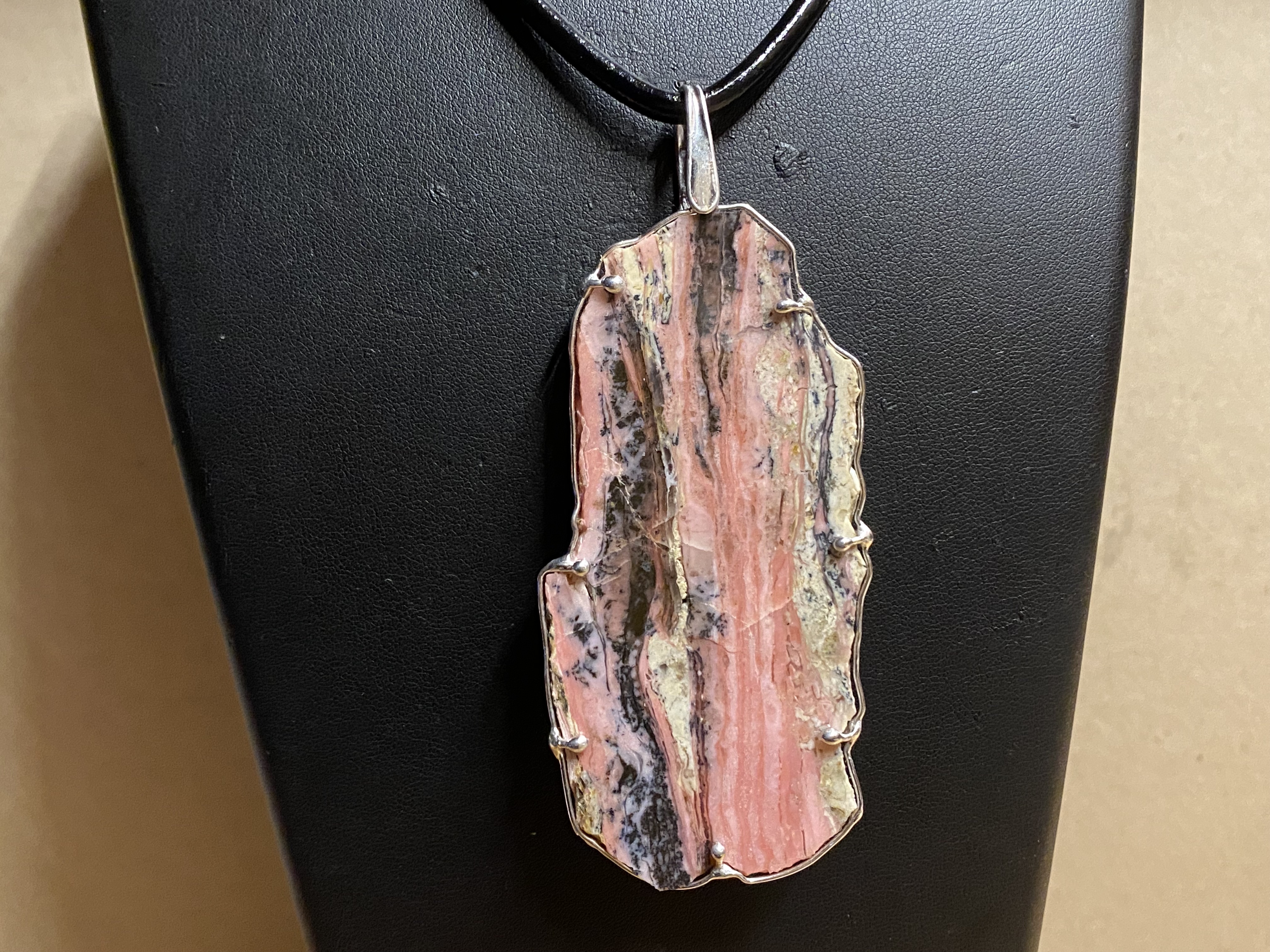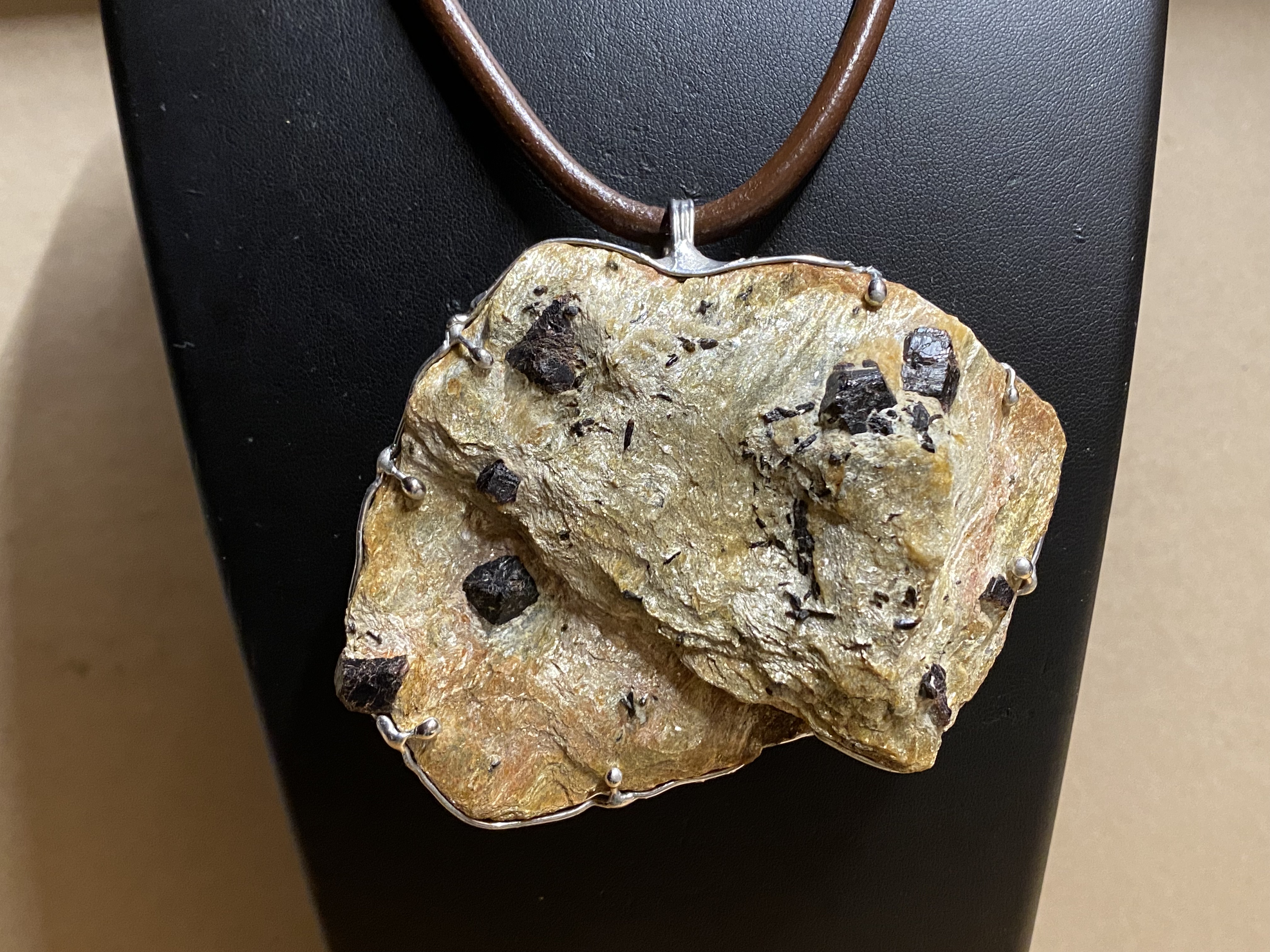 Velikost přívěsku je13 x 6 x 1,5cm, zavěšen na přírodní lakované kůži. Kč 3.800,-.